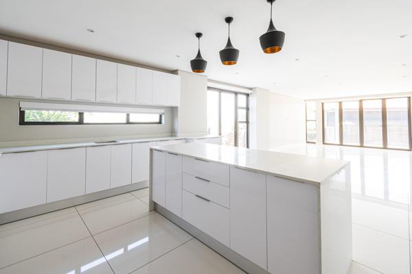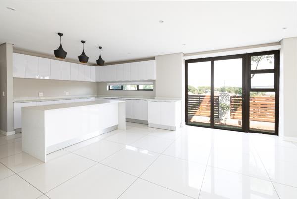 Brand new, modern contemporary home in Sera Bella, Izinga. This 529m2 home with 6 bedrooms and 5.5 bathrooms features a fully fitted kitchen and scullery with Smeg and Miele appliances, and an open plan living area leading out onto a spacious outdoor entertainment area. This overlooks the landscaped garden.