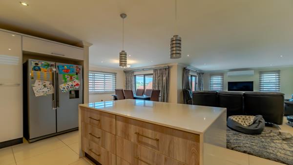 Stunning end unit in secure position in prime Izinga Estate. Freestanding home featuring a modern open plan kitchen with caesar stone tops, separate scullery with direct access to the courtyard and staff accommodation. Spacious lounge and dining room which flows effortlessly to the covered patio and private garden. Downstairs is a guest suite and bathroom. Upstairs boasts three lovely sized bedrooms, all en-suite, excellent dressers, plus expansive upstairs covered balcony with tranquil outlook. Double garage and visitors parking which caters for a few vehicles. Communal pool in complex.