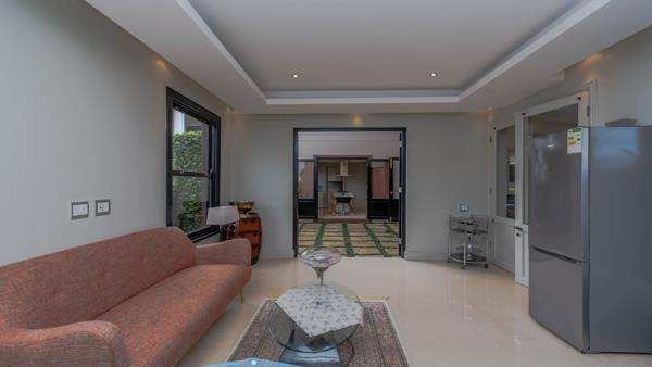 Lounge and dining-room plus a separate tv lounge or study. Small garden with private pool.
