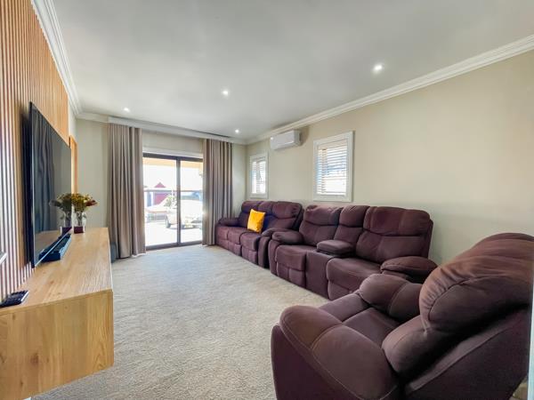 Enter this home with displays of luxuriousness. You will find a massive entrance. The house consists of porcelain tiles that flow seamlessly throughout the home. Beat the summer heat with split air conditioning and relax in the open plan living areas. Entertain in the large guest lounge and enjoy watching a movie in the cinema lounge. If you love comfortable living with unlimited space in every area, then this home is for you! A residence that features four bedrooms and three exquisitely designed bathrooms. The main bedroom includes a stunning his-and-her en-suite bathroom and a dressing room, offering a sense of privacy and luxury. The study is located in a quiet area on the upper floor, making it ideal for remote work.
