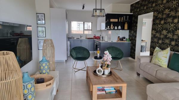 This spacious modern eco-friendly apartment is situated in the sought after Izinga Eco Estate. The three bedroom, two bathroom top floor unit is bright and is tastefully decorated. This apartment boasts an open plan kitchen with high-quality finishes, a coffee station area, a dinette and a lounge that lead to a veranda with a built-in braai area.