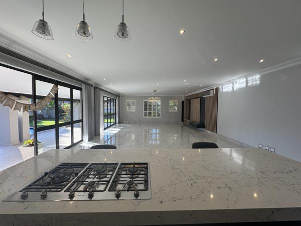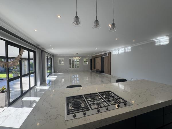 Designed for effortless entertaining and modern family life, this home boasts an expansive open-plan living area flowing seamlessly into a sleek contemporary gourmet kitchen, complete with a scullery and laundry. The elegant double-volume entrance, adorned with striking modern pendant lighting, sets the tone for the luxury that follows. Enjoy year-round entertaining on the large covered patio overlooking a private pool and beautifully landscaped garden a true entertainers dream.