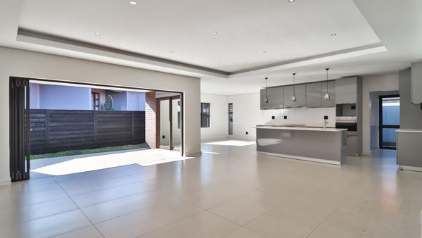 This home features 3 bedrooms and 2 bathrooms, one bedroom being en-suite. The home includes a lovely and specious kitchen and living area that flows seamlessly and leads out to a patio area. The contemporary kitchen features a separate scullery, as well as an outdoor service yard which adds to the home''s functional layout.