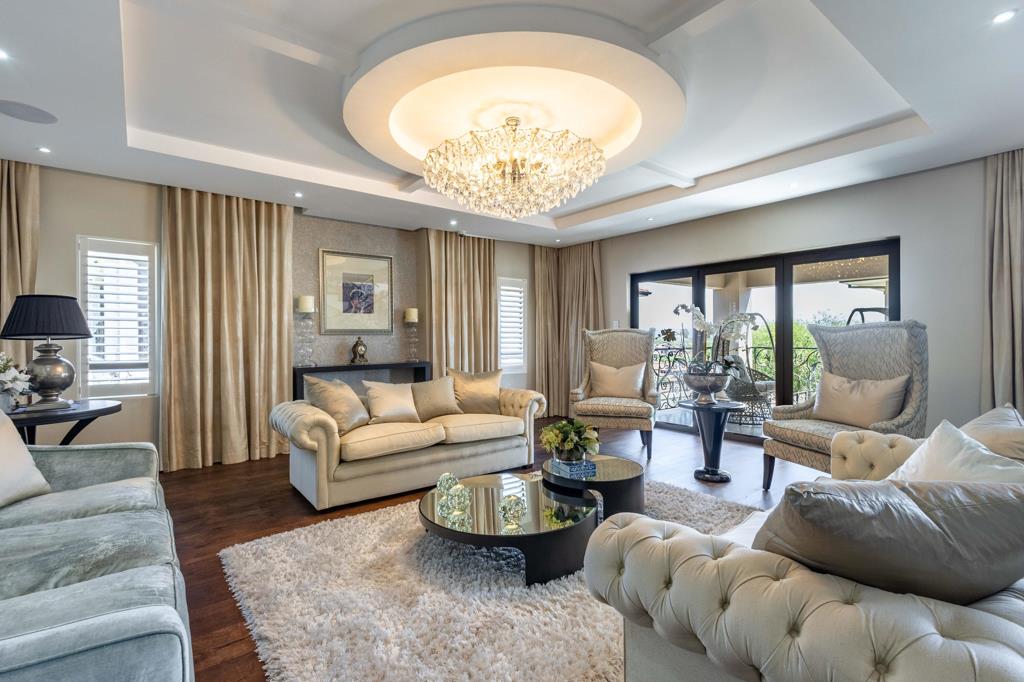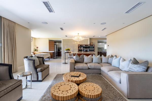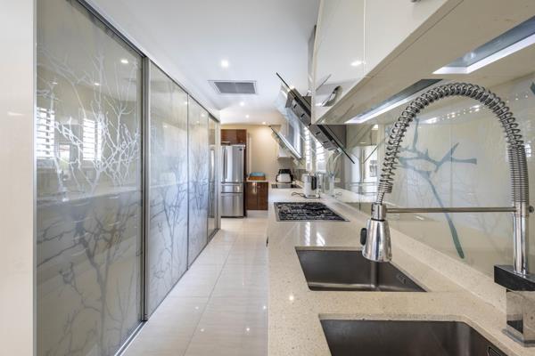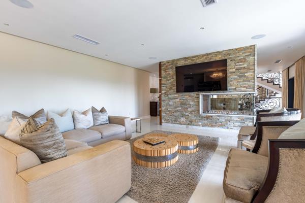 DUAL MANDATE | This exceptional 5-bedroom mansion in Izinga Estate offers a rare combination of sophistication, comfort, and cutting-edge convenience. Designed with luxury living in mind, the home spans three levels, easily accessed by a Kone lift or feature staircase, and is powered by a full inverter system. On the middle level of the home, the formal Grande entrance with high-volume ceiling, Austrian crystal chandeliers, and unique mosaic tiles, leads to the designer kitchen fitted with integrated Miele appliances, Caesarstone countertops, and custom cabinetry. This flows to a breakfast nook, formal dining room, and lounge with crystal chandeliers and bespoke finishes. On the lower level of the home, the residence boasts multiple entertainment areas, including a home theatre with reclining seats and a starlit ceiling effect, a fully fitted bar and kitchenette with Miele appliances, and expansive indoor-outdoor spaces that flow to a heated 11-meter rim-flow pool, baby pool, enclosed jacuzzi, and boma with teppanyaki and braai facilities.