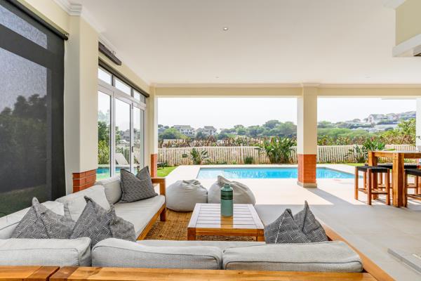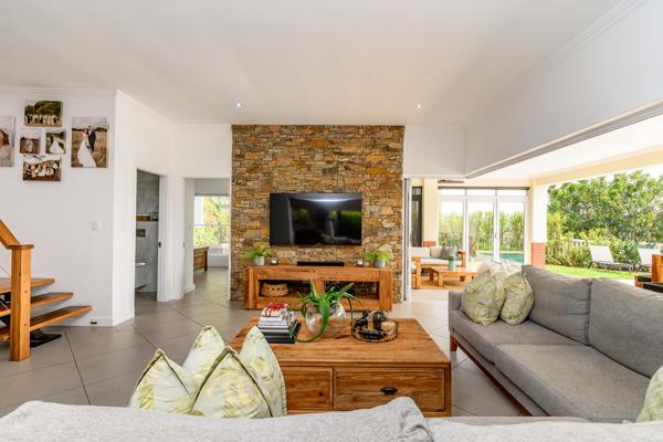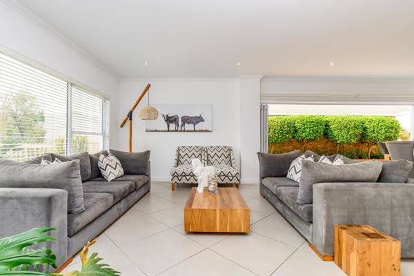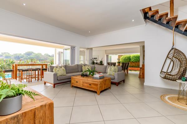 The benefits of the South entry / North facing aspect become obvious upon your arrival, and which make this a really gorgeous private and vibrant home. Offering loads of sunlight and bright open living spaces...spacious bright entrance foyer with breathtaking views over the estate, five generous en-suite bedrooms, elegant solid Kiaat timber staircase to lower level boasting spacious lounge and dining room, lovely covered patio leading onto the sparkling heated pool and level garden. Aluminium stack-back doors open the home up completely...an entertainer''s dream home. Premium finishes and air conditioning throughout (all bedrooms are air-conditioned). Sparkling heated pool and private garden off an expansive covered entertainer''s patio. Modern in design and so very practical in all respects. This freehold property is pet friendly.