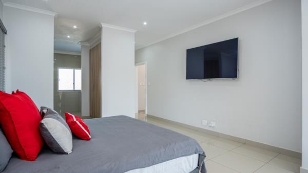 With 5 bedrooms and 5 bathrooms on offer, an open plan living area, leading off onto a covered patio, designer kitchen with a scullery and pantry, this home has both inside and outside appeal. The convenience of a bedroom on the ground level creates a practical, yet convenient set up for guests or older folk.