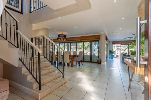 Outdoors, the home transforms into a private resort-style retreat. At its heart lies a sparkling pool and built-in jacuzzi, surrounded by a gas braai, pizza oven, potjie stand, and more the ultimate setup for unforgettable gatherings. The lush, indigenous garden, framed by two tranquil water fountains, adds a sense of calm and balance.