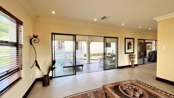 This exceptional residence offers multi levelled living with an abundance of space throughout. The middle section offers two lounges, dining room and large granite counter top kitchen with a fully plumbed scullery. The perfect entertainment area with aluminium stack back doors draw you out to a secluded private pool and covered patio area. A guest toilet along with a utilities room and completed with a large bedroom en-suite with a private balcony boasting stunning sea views broken down by the La Lucia bowl.