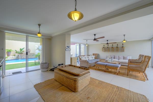 The kitchen has its own breakfast area with the most amazing sea views. This section has a seamless flow with 2 more lounges and dining room as well as a built in braai area with a bar. Perfect to relax, sip cocktails and have the feeling of being on a cruise liner sailing on the ocean.