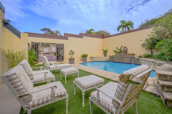 Sliding doors open out to a sparkling pool, jacuzzi and garden, all overlooking the Indian Ocean.