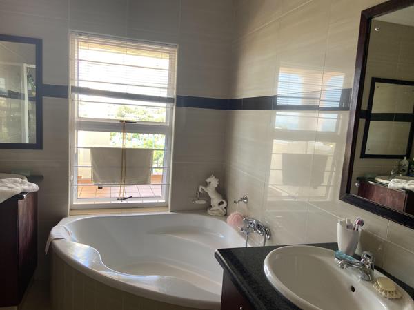 This beautiful immaculate Townhouse ticks all the boxes in a sought after Estate. Four beds, 4 baths tastefully decorated is a must to view. Spacious unit with bar area, open plan kitchen, lounge and dining room, leads out to a balcony with magnificent sea views. Two beds on the ground floor and two beds on the first floor gives this unit a private setting. Master bedroom leads out to a balcony as well with sea views.