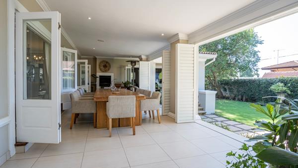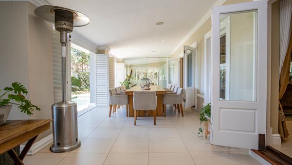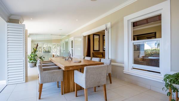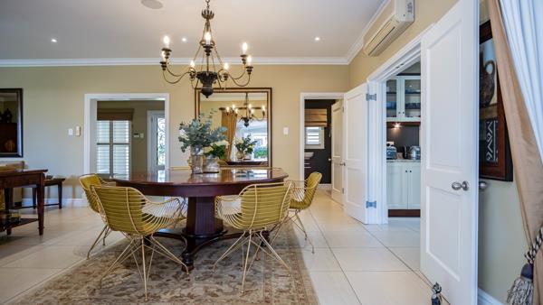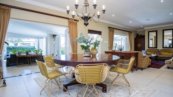 Adjacent to the patio, you''ll find a cozy family TV lounge, complemented by an open-plan designer kitchen that includes a coffee station, breakfast nook, and a central island. The scullery leads to a glass-enclosed conservatory, which connects to a beautifully fitted laundry room located next to the double garage.