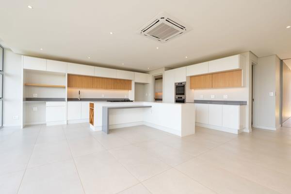 The heart of the home is the gourmet open-plan kitchen, complete with a large scullery and an impressive central island ideal for hosting family and friends. Flowing seamlessly from the kitchen are the light-filled living areas, opening through sliding doors onto a generous patio. Here, you can soak up panoramic ocean views and admire the beauty of the adjoining green conservancy.