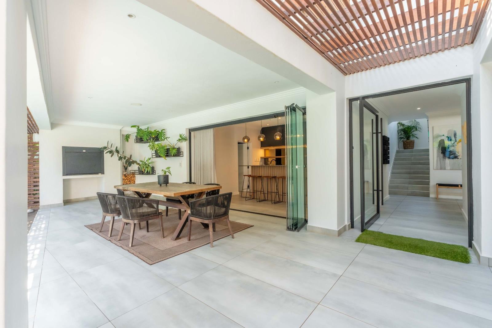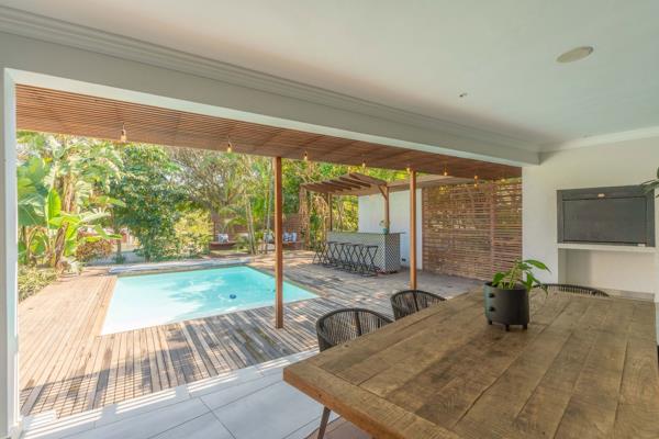 Luxury Living Redefined. Welcome to this reimagined dream home offering the ultimate blend of comfort, sophistication, and elegance. Spanning two luxurious levels, the residence features three elegant reception rooms, a gourmet kitchen with a scullery/laundry, and an exclusive bar opening out to an outdoor entertainment area. It also includes a dedicated movie room for entertainment, two spacious en-suite bedrooms on the ground floor, and a master suite with two additional bedrooms upstairs.