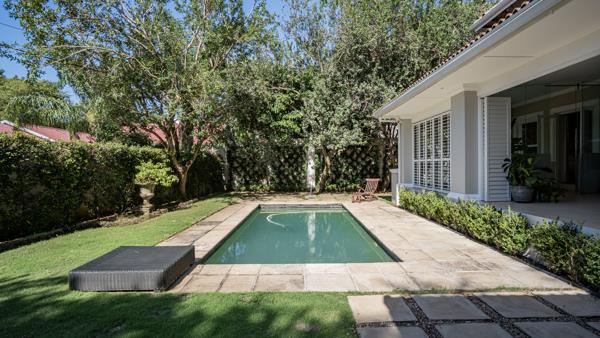 The home''s ingenious design fosters a seamless flow from the open-plan lounge and dining room onto a covered verandah, encased with security American shutters, this space is both secure and aesthetically appealing. The verandah boasts fancy French doors and vintage sash windows, inviting you to the built-in braai prep area, which leads onto a glistening swimming pool.