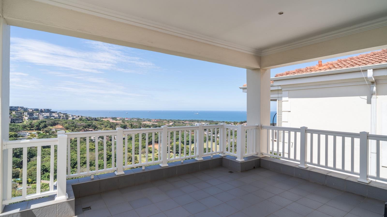 Simply stunning home with the most amazing outlook. This Beautiful North facing 4 bed, 4.5 Bath home is situated in a highly sought after Estate, conveniently situated with 180 degree sea views. This Secure, unique home offers a sense of warmth and style from the time you enter directly from your double garages into the open plan living area, with ample parking space, the kitchen is fully fitted with a scullery. The bedrooms upstairs are fitted with shutters and offers views. Walk downstairs to a self-contained suite with a bedroom ensuite bathroom and an open plan living area that leads off onto the patio. Space Galore from wherever you are in this huge family home which is freestanding and private. Situated in this ever-popular estate with 24 hour access control gates and biometric access. The estate is conveniently situated within easy access to Gateway, La Lucia and all the amenities of Umhlanga.
