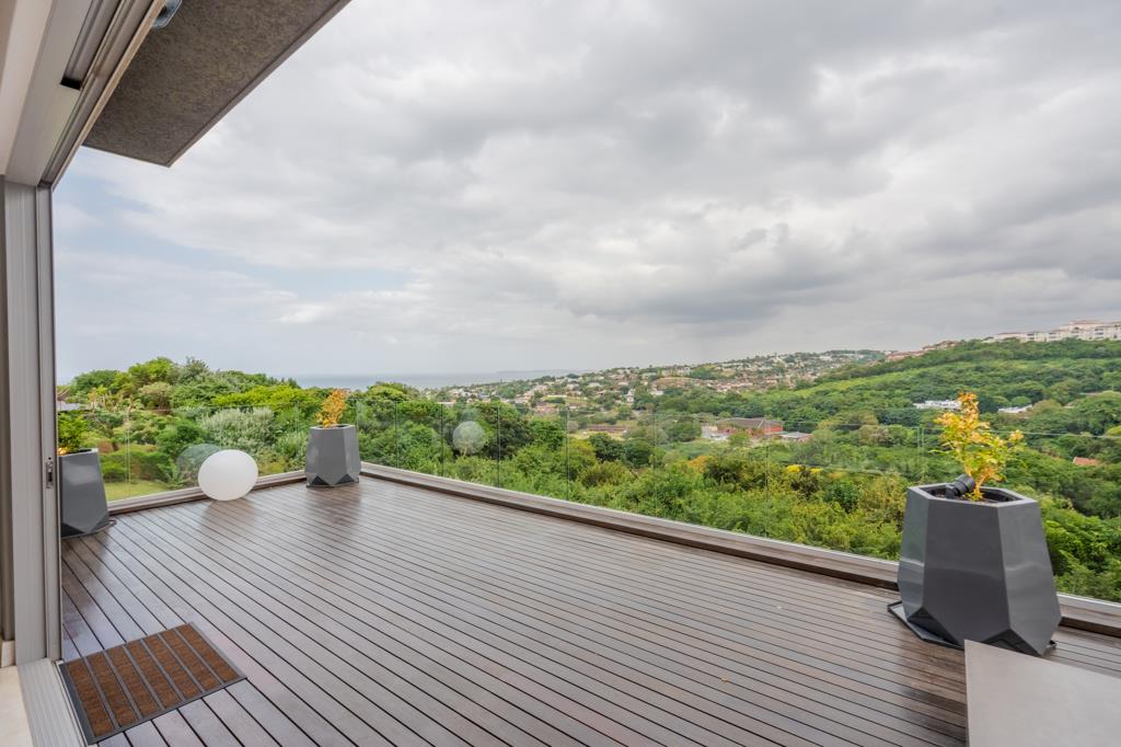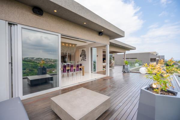 This brand new home has THE most breath taking views of the Ocean and the Conservancy in this beautiful Estate! The 3 tiered architect designed home with a lift to every level, has everything your heart desires, with no expense spared and every need catered for. Sometimes the English language is insufficient to describe this opulent perfection, so you have to come and see for yourself: Lounge, bar area, dining room, kitchen all leading onto a large deck and views for days! 4 Bedrooms with stunning en-suites, touch screen Creston Home Automation, automated curtains, drop down TV Screens, room climate control, sound and lighting control, all from the comfort of your bed. The main bedroom is fit a King and Queen with automated doors, sensor lights and walk in closet and dressing room to die for, you dont have to lift a finger, the house does it for you! All the rooms are fitted with coffee/tea station with integrated fridge. 5.5 Bathrooms generous proportions with Top Draw Fixtures and Fittings. 1 Study and reading area with beautiful sky-light 1 Flatlet Fitted with Bosch Appliances or Staff Accommodation 1 Open Plan Kitchen fitted with top draw Miele appliances, conversation island, scullery, pantry and laundry area, everything at your fingertips. 2 Garages with direct access to the home 4 Parkings Entertainment area on the lower level, includes gym, studio, cinema room and games area leading onto a heated rim flow pool, with its own coffee drinks station and lovely automated fire pit and wrap around deck, leading onto the flat garden, which has direct access to the beautiful conservancy, for those morning walks. Words or pictures cannot do this home justice, let us blow you away with an actual viewing of this spectacular property, phone Ken and Charlene now!!!!