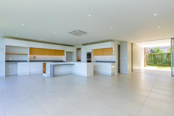 Situated in the exclusive and sought after Executive Estate, known for its world class security and prestigious address, is this exceptional home, within a complex. Enter through a lovely garden area and large, covered patio, to be greeted by spectacular views over the private conservancy, straight to the Indian Ocean. The view is offset by the gorgeous neutral tones of the spacious open plan kitchen and living area. A separate scullery area opens into the tiled and extra-large double garage, complete with a staff shower and loo.