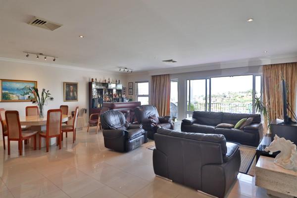 Sought after apartment in the beautiful La Palma Terraces. This double story Penthouse is very spacious with spectacular sea views. Located in an upmarket and sought-after Estate this luxurious home offers high end finishes, including ducted air-conditioning units throughout. The fully fitted kitchen with scullery leads to the Dining Room, Pub and Lounge which opens to a large private covered Patio which makes it the perfect place for living and entertaining.. All four bedrooms come equipped with their own en-suite. Two bedrooms are on the ground floor and the other 2 on the first floor. The main bedroom has a walk in wardrobe and opens onto a private balcony with amazing sea views.