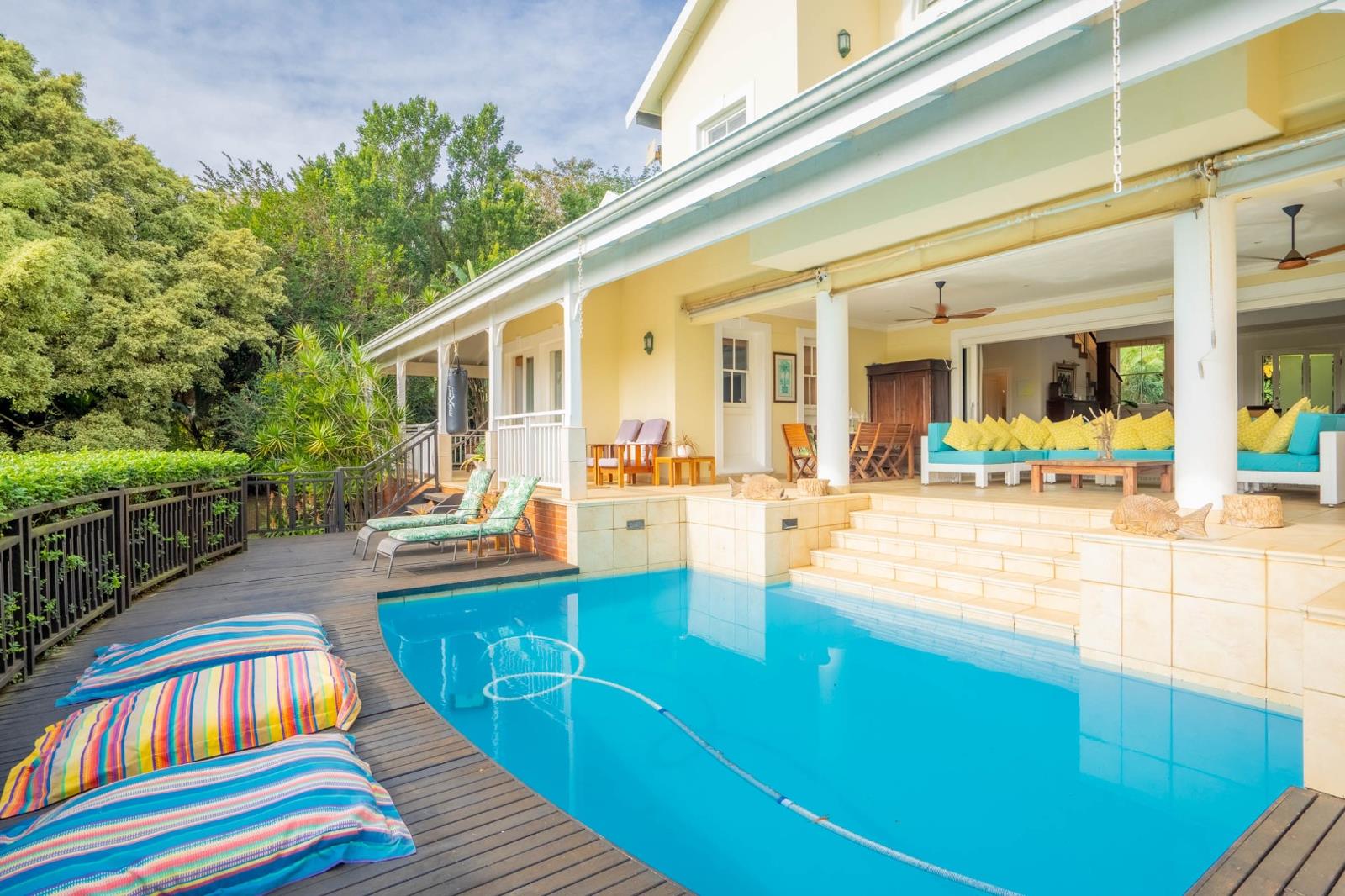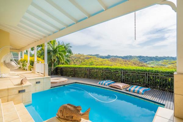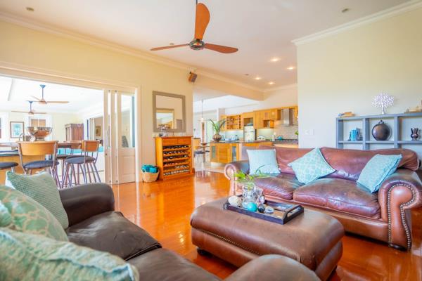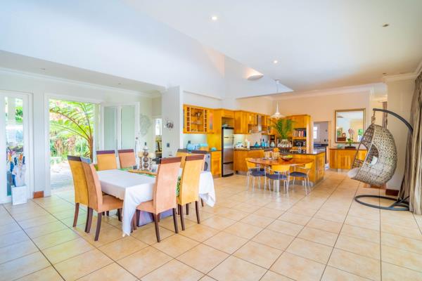 Situated in one of the most sought after addresses on the Estate, this beautiful home offers spacious, open plan living areas, fitted bar and fully fitted, open plan, kitchen with separate scullery and pantry cupboard, all flowing seamlessly to large covered patio with braai area, to pool and deck in private garden.