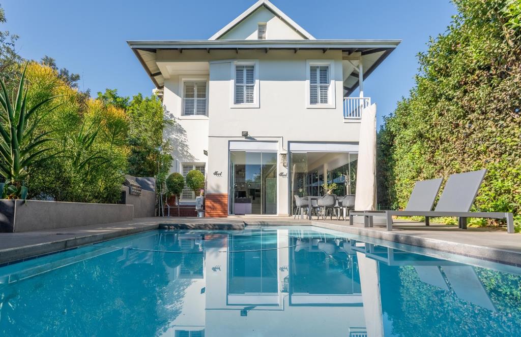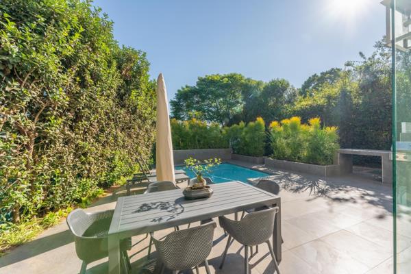 Boasting several expansive open-plan living areas that effortlessly flow out through seamless glass, stack back doors to the inviting expansive, external area. The outdoor area is a haven for relaxation, featuring a built-in braai and server, a dazzling pool, and a wrap-around garden, with a secluded Boma area.