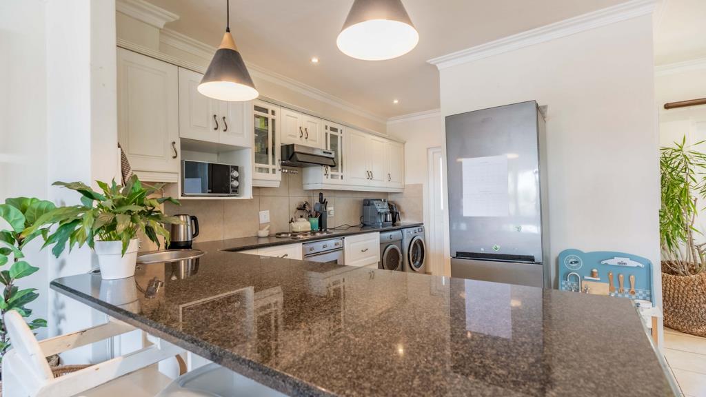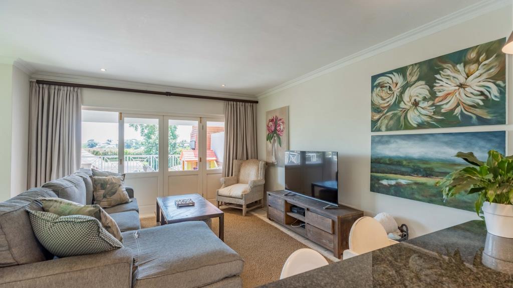 WATCH THE SUN SET - This super duplex, conveniently situated for Gate 6, has a well-sized garden and an open-plan living area which opens onto a large balcony with built-in braai. 3 Bedrooms, all upstairs. 2 Bathrooms plus guest toilet. Elevated outlook. Double garage below the house.