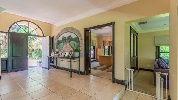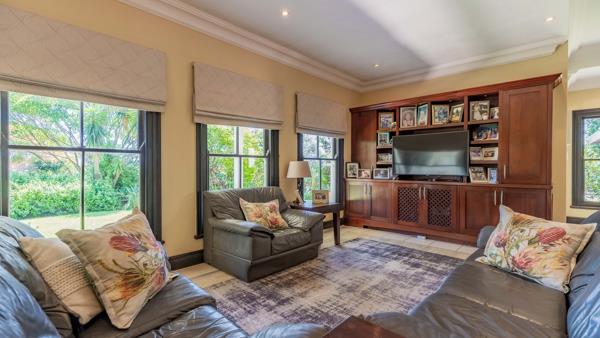 The covered wraparound verandah, with a built-in braai, flows seamlessly to the private, level garden. The sparkling pool, jacuzzi and the inviting pool-bar gazebo are the perfect setting for long summer lunches and sundowners at the poolside.