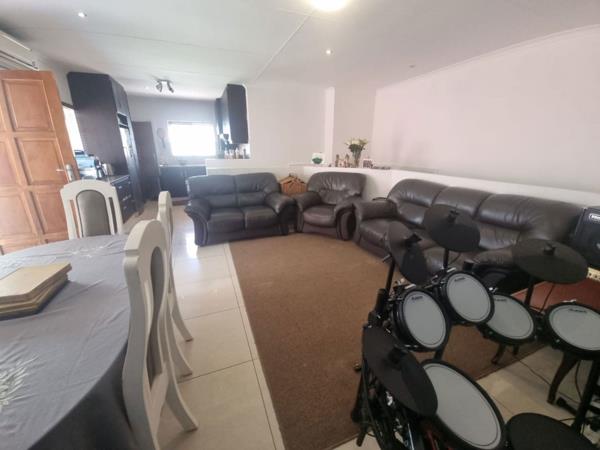 Three generously sized bedrooms with built-in cupboards ensure convenience and plenty of storage, while two well-appointed bathrooms provide ample space for the whole family.