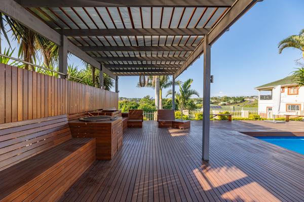 The marble tiled sunroom/lounge has aluminium stack doors which are great for windy days and cool evenings. Leading off from the sunroom/entertainment area is a heated pool and decked area with lighting that creates an incredible ambience at night. In addition there is a covered dining/braai area crafted by a superb carpenter with seating galore. There is a large lawned back yard for pets and children to play safely, as well as a concrete slab foundation to add a pool house or cottage(Water and electrical points are there)