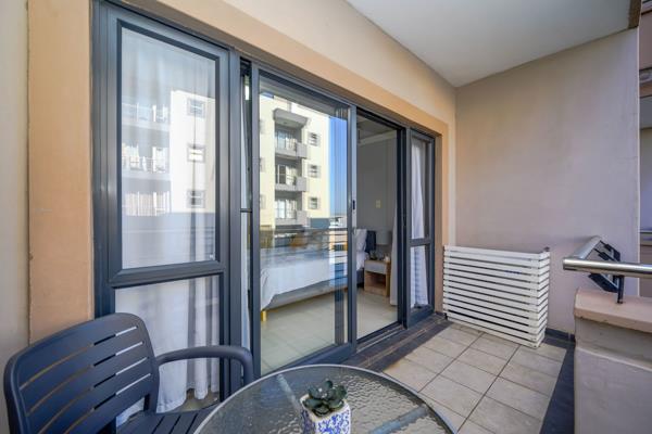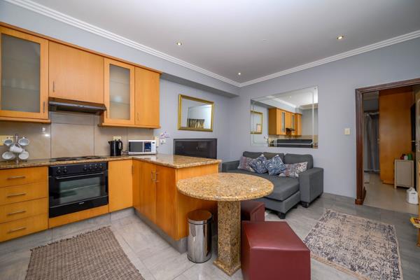 Porcelain tiles in lounge and kitchen area and laminated flooring in the air conditioned bedroom. The bedroom opens onto a lovely balcony. The en-suite bathroom has a shower, basin and loo. Granite kitchen counters with a small breakfast counter. The complex has a 24hr security guard, one under cover parking bay which is No:18 for exclusive use and a swimming pool.