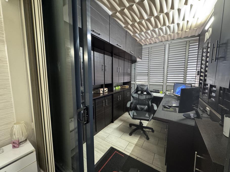 Two generously sized bedrooms with built-in cupboards. The main bedroom has additional cupboard space and a built in office space (please see images)
