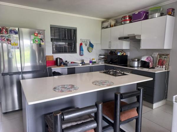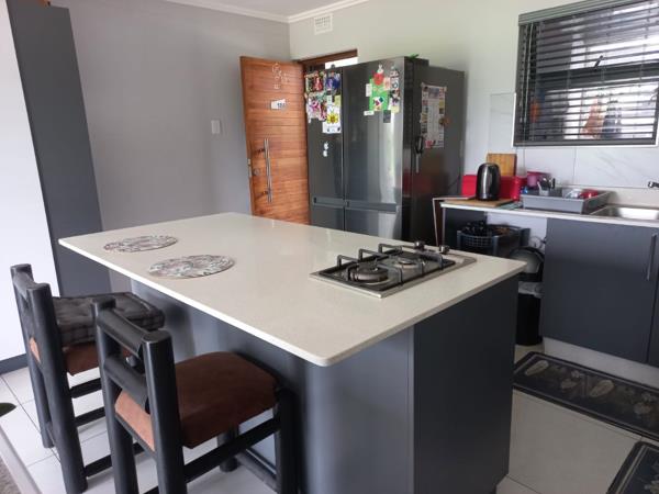 The kitchen and lounge area is open plan. A seamless flow. There is a lovely balcony in the lounge overlooking the Umhlanga Ski Boat Club.