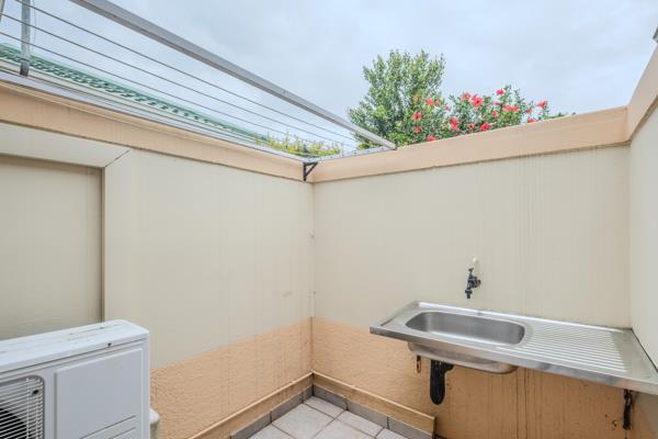A single garage with additional parking available in front features a convenient door leading to the enclosed washline courtyard and provides sheltered access directly into the home. Additional features include a DSTV dish, TV aerial, fitted blinds and security gates for added peace of mind.