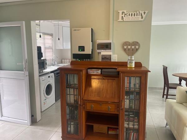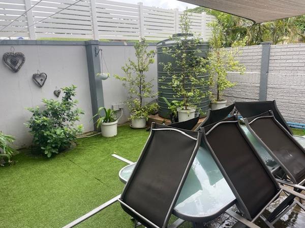 The outside garden boasts a built-in braai for al fresco enjoyment with under counter storage space with cozy garden.