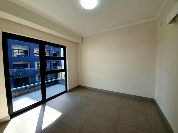 The open pan lounge area opens to a lovely balcony overlooking lovely apartments in Umhlanga.