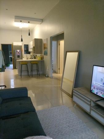 Step into a bright, open-plan living space that effortlessly combines the kitchen, dining, and lounge areas designed for both functionality and style. The fully fitted kitchen boasts granite countertops and ample cupboard space, perfect for cooking enthusiasts and entertainers alike.