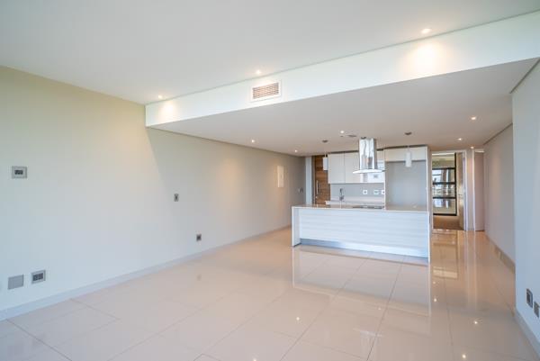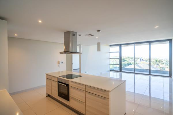 Complete with spectacular views, a communal swimming pool and entertainment area is this upmarket three bedroom apartment in a brand new development in the Umhlanga Ridge area. Stylish porcelain tile floors and modern fittings feature throughout the home which comprises of three bedrooms, two bathrooms, an open plan reception area and kitchen. The reception area is light and spacious with plenty of space for both living and dining suites, and opens onto the large L-shaped covered balcony from which the gorgeous ocean views can be admired. Integrated into the reception area is a modern kitchen with built in cupboards, granite tops and breakfast bar. All three bedrooms are sizeable with built in cupboards, with the master containing an en-suite with a shower unit, while the family bathroom is full with both a separate bath and shower suite. The apartment is situated within a secure complex with two secure parking bays available for the use of the residents of the home, who can also make use of the communal pool and entertainment area. The complex is within close proximity to all local Umhlanga amenities and is available to rent.