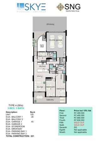 Ranging from R7 480 000 and R8 300 000, this immaculate, stylish and mod apartment, offers 3 bedrooms, all en-suite, with spacious, open plan living and entertaining areas and fully equipped kitchen with Smeg appliances, flowing seamlessly to private balcony and exquisite, unobstructed sea views, from the 4th floor up.