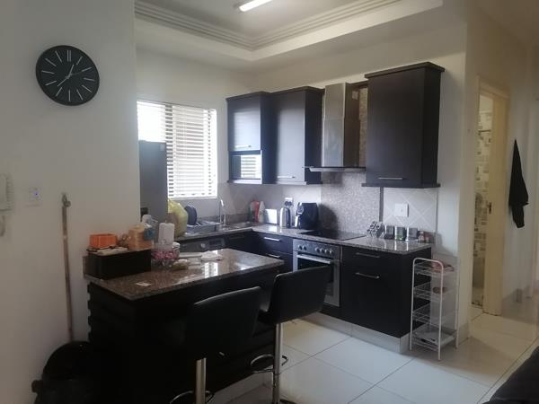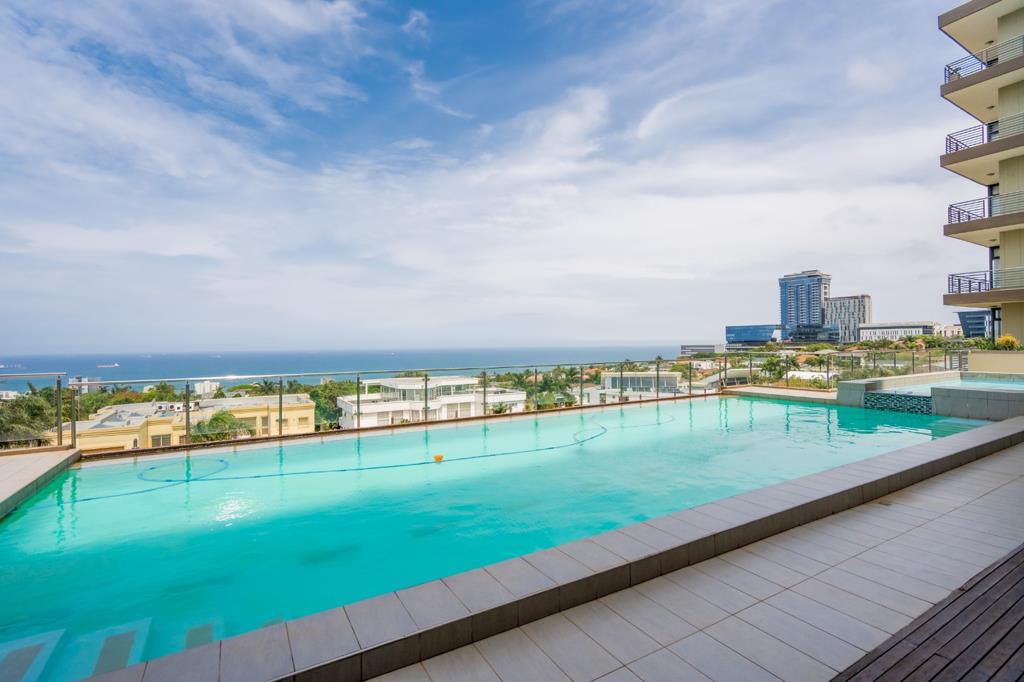 Complete with spectacular views, a communal swimming pool and entertainment area is this upmarket two bedroom apartment in this upmarket development in the Umhlanga Ridge area. Stylish porcelain tile floors and modern fittings feature throughout the home which comprises of two bedrooms, two bathrooms, an open plan reception area and kitchen. The reception area is light and spacious with plenty of space for both living and dining suites, and opens onto the large covered balcony from which the gorgeous ocean views can be admired. Integrated into the reception area is a modern kitchen with built in cupboards, granite tops and breakfast bar. Both bedrooms are sizeable with built in cupboards, with the master containing an en-suite with a shower unit, while the family bathroom is full with both a separate bath and shower suite. The apartment is situated within a secure complex with one parking bay available for the use of the residents of the home, who can also make use of the communal pool and entertainment area. The complex is within close proximity to all local Umhlanga amenities and the beaches.