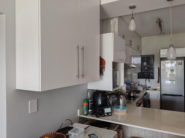The apartment has upmarket finishes with the kitchen having granite tops and cupboards. The owners have also installed additional cupboards in the kitchen area and in the bedroom.