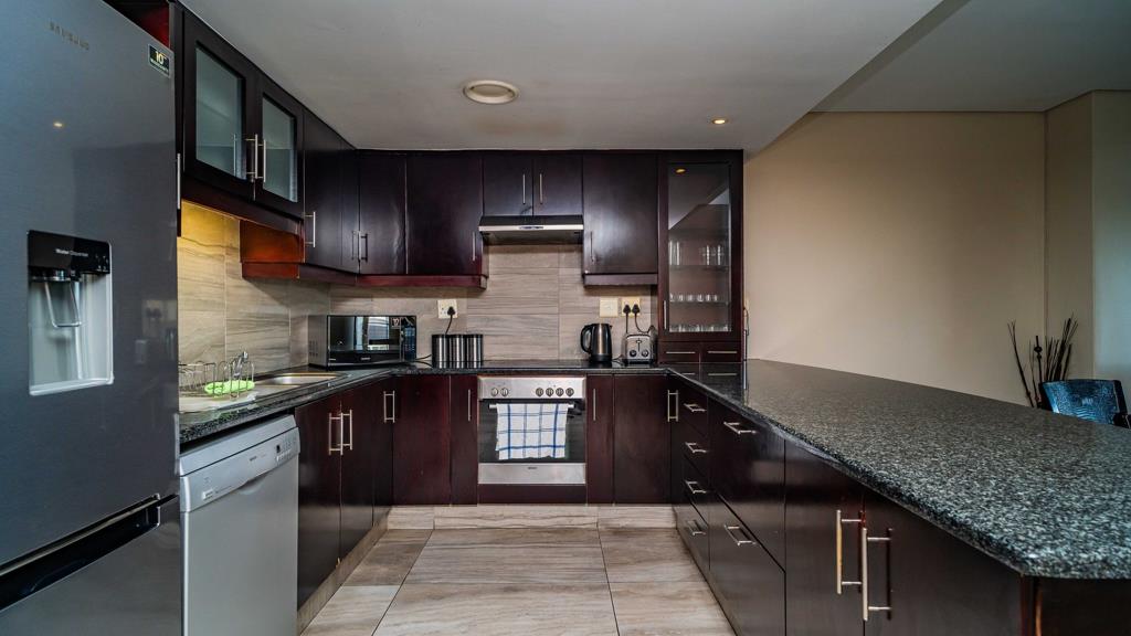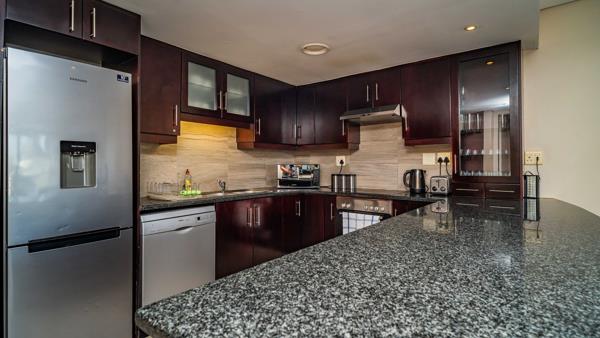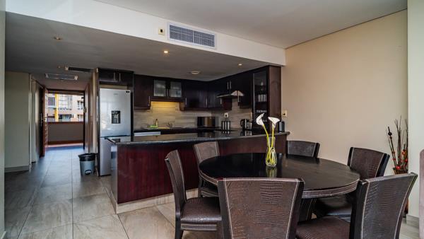 Exquisite and modern, 150 m2 beautifully furnished apartment, consisting of three bedrooms and three bathrooms (2 of which are ensuites). A lovely flow from the living area and main bedroom which overlooks the popular and vibrant Gateway theatre of shoppertainment.
