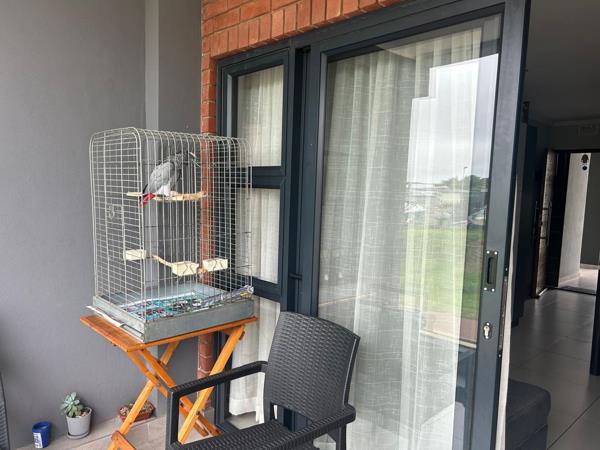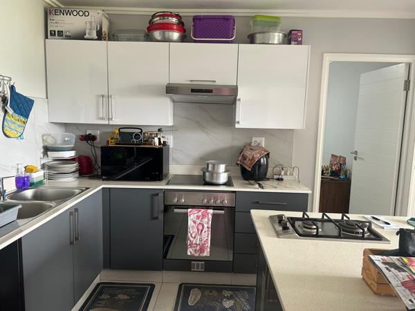 This spacious unit is fully tiled and has been fitted with quality fittings and fixtures throughout. Entering the apartment you step into an open plan lounge, dining room and a fully fitted kitchen. The kitchen cupboards are grey and comprises of white granite tops. An gas hob and electric oven with extractor fan has been installed. There is an outside scullery adjacent to the kitchen for additional appliances. Both the bedrooms contain built in cupboards and en-suite bathrooms. There is an undercover balcony looking onto a green belt.