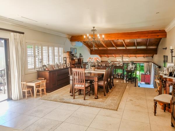 Main house Consists of a modern kitchen / open plan dining room sunken lounge. The sunken lounge has big glass sliding doors leading into the garden and pool area. It also has a separate entertainment and braai area with water features separate from those at occupying the B&Bs. Outdoor table and chairs and a good set up that creates a good vibe for entertaining and family get togethers whilst the B7Bs are generating income.