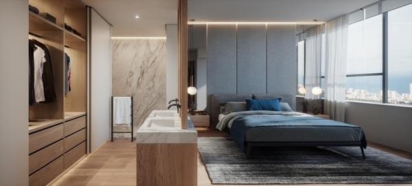 This 198 square metre penthouse was formed by combining two apartments and is currently being sold as a white boxan empty canvass to create your own story! All air-conditioning, electrical and first fix plumbing is complete.