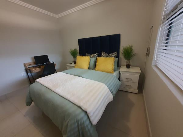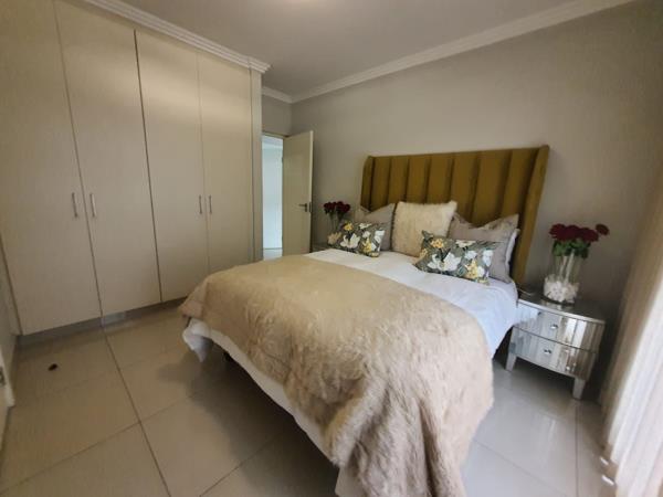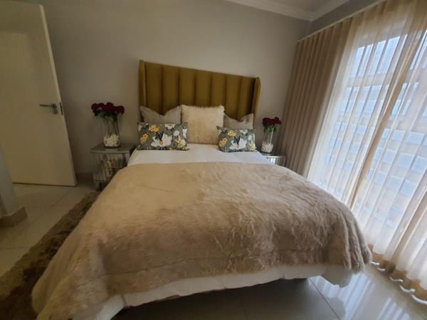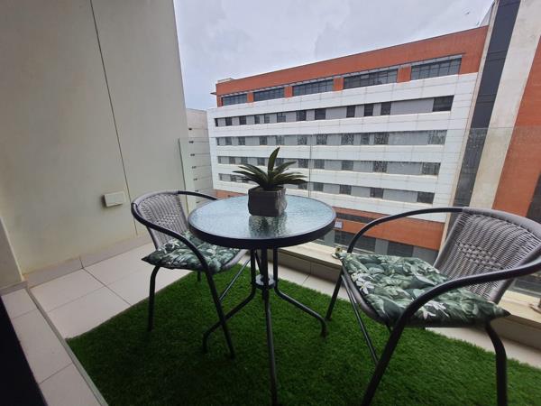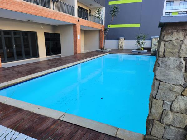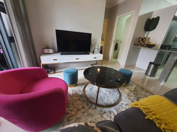 The unit encompasses an open-plan layout with a fitted kitchen, lounge, two bedrooms, and two bathrooms. The master bedroom has an en suite making your private space convenient. The main bedroom and lounge leads to a balcony.
