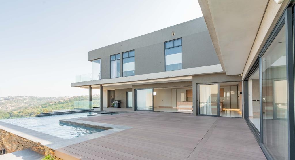 Step into a world where architectural mastery meets uncompromising luxury, set high above the coastline in La Lucia Ridges most elite address The Executive. This Gated Estate is more than an estate, it is a private sanctuary, cocooned in a secure conservancy where manicured walkways weave through lush greenery, past a shimmering dam, and into the domain of wild antelope, exotic birdlife, and the rustle of coastal breezes.