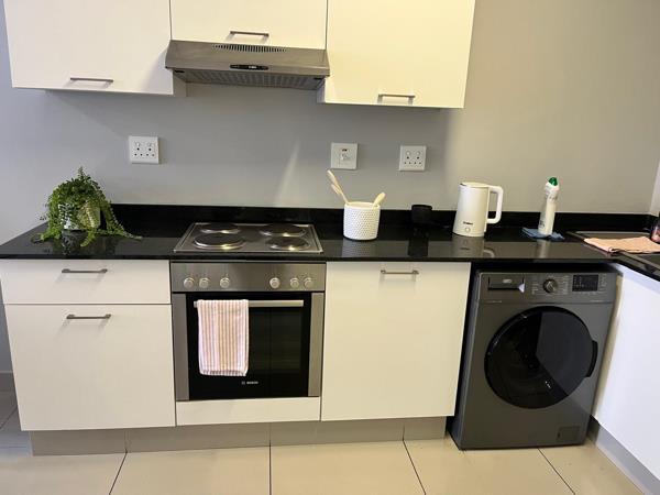 Open plan lounge and dinging area with good space and a kitchen with built in hob and oven. Space for a fridge and a washing machine.