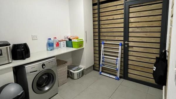 Featuring high-end finishes throughout, built-in fridge, sleek gas appliances, and a spacious scullery with ample storage combining practicality with elegance. Large windows and patio doors allow natural light to stream in.