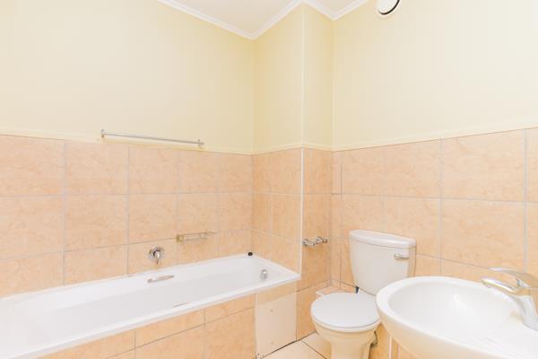 Fully tiled and fitted with built-in cupboards, offering ample storage and a modern, streamlined look.