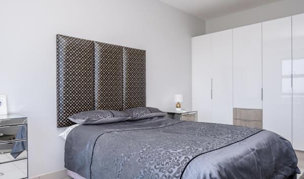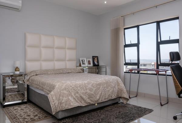 - A serene master bedroom sanctuary with an en-suite bathroom, refreshing air conditioning, ample storage in built-in cupboards, tasteful curtain rails, and sleek tiled floors.
